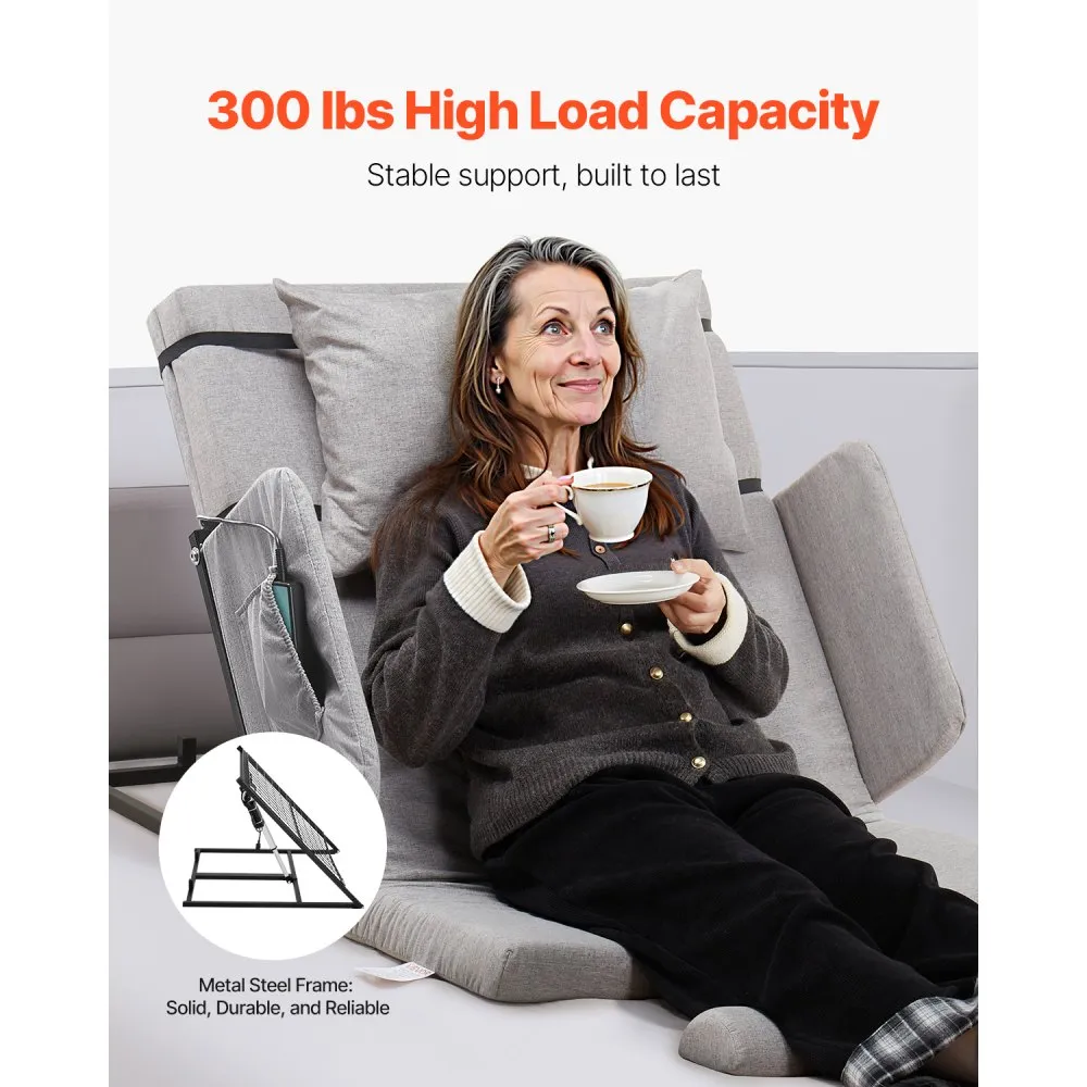 Electric lifting backrest for bed with a 300 lbs capacity, featuring a 4-68° adjustable angle range. Designed with a guardrail armrest and a convenient storage pouch, this backrest is machine washable for easy maintenance. Ideal for pregnant women, the elderly, patients, and individuals with disabilities.